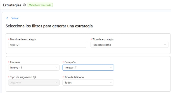 Tipo de estrategia: Selecciona IVR con Retorno.
