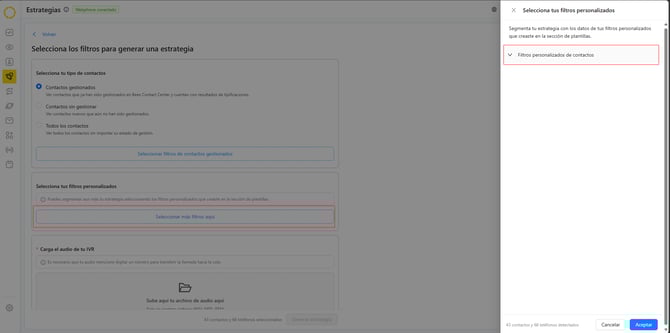 Si has creado plantillas (contactos o productos) con cabeceras de tipo filtros, puedes usarlas para segmentar aún más la estrategia.