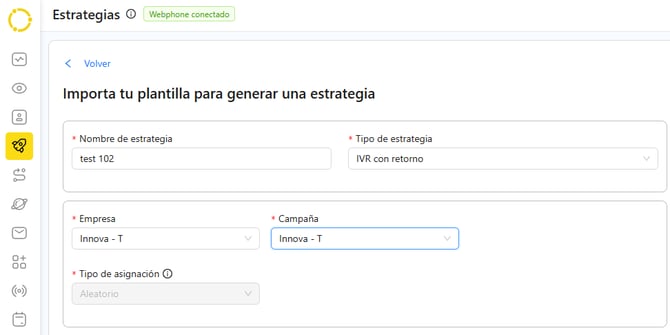 Creación de Estrategia IVR con Retorno (por plantilla de importación)