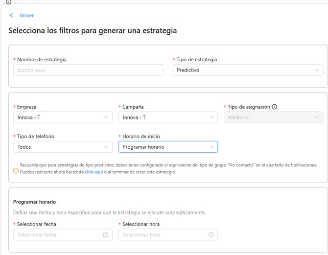 Nota: Para estrategias Predictivo es necesario contar con la configuración de equivalencias para el grupo “No contacto” en el apartado de tipificaciones.