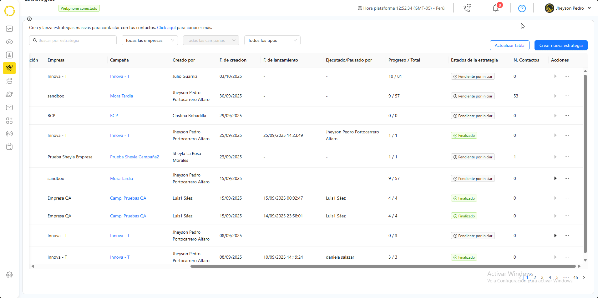 Una vez que haces clic en Generar estrategia, el sistema te redirige automáticamente al listado de estrategias. En esta vista podrás visualizar la estrategia recién creada junto con todas las demás existentes.