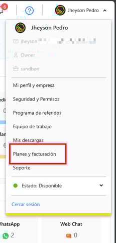 En el menú desplegable, selecciona la opción Planes y facturación.