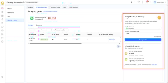 Mantener saldo disponible te ayudará a evitar pausas inesperadas y garantizará que tus clientes siempre puedan comunicarse contigo sin interrupciones.